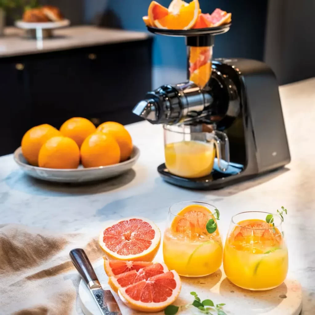 Maskinen utmärker sig genom tyst drift, något som uppskattas av alla som vill göra juice tidigt på morgonen utan att väcka hela familjen. Den kompakta designen med en 500 ml behållare gör att den inte tar upp onödig plats på köksbänken, samtidigt som den enkla finishen passar in i de flesta kök. Dessutom är rengöringen enkel tack vare genomtänkta löstagbar delar.